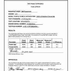 J1349 Certified Power Engine Data for GM LZ9 as used in 2006 Pontiac G6 Level 2