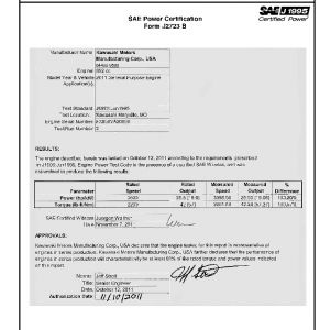 J1995 Certified Power Engine Data for Kawasaki FX850 as used in 2011 General Purpose Engines – Level 1