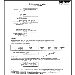 J1995 Certified Power Engine Data for Kawasaki FS651V as used in 2012 Lawn Mowers – Level 1