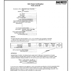 J1995 Certified Power Engine Data for Kawasaki FX 751V as used in 2012 Lawn Mowers – Level 1