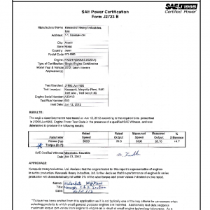 J1995 Certified Power Engine Data for use in Kawasaki FX801V-583 DFI 2012 General Purpose Engines – Level 1