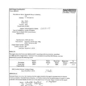 J1995 Certified Power Engine Data for Kawasaki FX651V-EFI as used in 2016 General Purpose Engines – Level 1