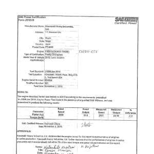 J1995 Certified Power Engine Data for Kawasaki FX691V-EFI as used in 2016 General Purpose Engines – Level 1