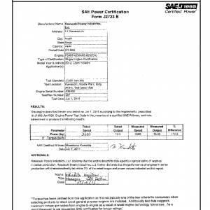 J1995 Certified Power Engine Data for Kawasaki FS481 as used in 2012 Lawn Mowers – Level 2