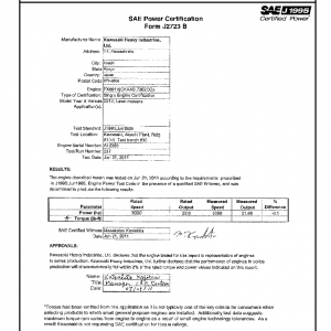 J1995 Certified Power Engine Data for Kawasaki FX691V as used in 2012 Lawn Mowers – Level 2