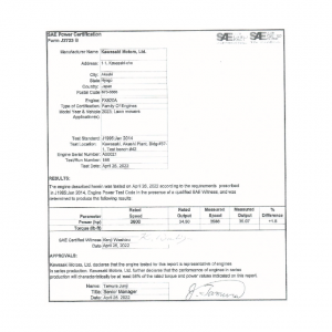 J1995 Certified Power Engine Data for Kawasaki as used in the 2023 FX820A – Level 2