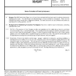 This SAE Information Report is a review of test methods that have been used to evaluate elastomeric hydrodynamic seals. The advantages and disadvantages of each method are discussed. There are ten methods total which include three suggested methods. For those interested in more detailed information on hydrodynamic sealing systems, see 2.2