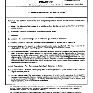 The objective of this glossary is to establish uniform definitions of parts and terminology for engine cooling systems.