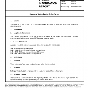 The objective of this glossary is to establish uniform definitions of parts and terminology for engine cooling systems.