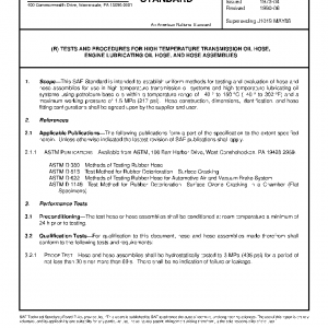 TESTS AND PROCEDURES FOR HIGH TEMPERATURE TRANSMISSION OIL HOSE, ENGINE LUBRICATING OIL HOSE, AND HOSE ASSEMBLIES