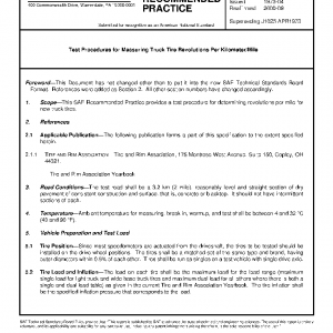 This SAE Recommended Practice provides a test procedure for determining revolutions per mile for new truck tires.