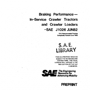 Minimum performance criteria for service braking systems, secondary stopping systems, and parking systems for crawler tractors and crawler loaders are provided in this SAE Recommended Practice. This is applicable to machines having a manufacturer’s maximum specified speed up to 16 km/h (10 mph). Refer to SAE J1057 and J1116 for machine identification.