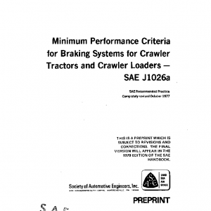 Minimum performance criteria for service braking systems, emergency stopping systems, and parking systems for crawler tractors and crawler loaders are provided in this SAE Recommended Practice. This is applicable to machines having a manufacturer’s maximum specified speed up to 16km/h (10mph). Refer to SAE J1057 and J1116 (Sections 1.1 and 2) for machine identification.