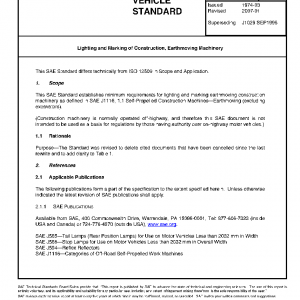 This SAE Standard establishes minimum requirements for lighting and marking earthmoving construction machinery as defined in SAE J1116, 1.1 Self-Propelled Construction Machines—Earthmoving (excluding excavators).