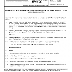 This SAE Recommended Practice applies to any internal combustion engine which can utilize SAE No. 6 thru SAE No. 00 size flywheel housing. It provides instructions for correcting flywheel housing bore runout readings which are influenced by crankshaft bearing clearance. Limits for bore and face runout are specified in the various SAE Standards and Recommended Practices covering flywheels and flywheel housings.