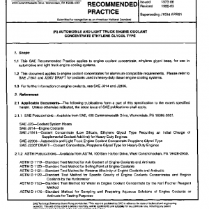 This SAE Recommended Practice applies to engine coolant concentrate, ethylene glycol base, for use in automotive and light truck engine cooling systems.