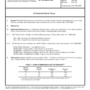 This SAE Standard covers nonreinforced, extruded, flexible tubing intended primarily for use as fluid lines for automotive windshield washer systems which conform to the requirements of SAE J942.