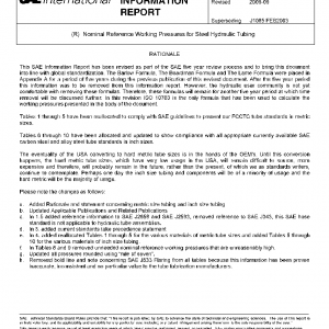 This SAE Information Report is intended to provide design guidance in the selection of steel tubing and related tube fittings for general hydraulic system applications. The information presented herein is based on tubing products which conform to SAE and ISO standards listed in the reference section.