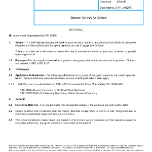 This document is intended as a guide for designing uniform operator controls for graders. Graders are defined in SAE J/ISO 6165.