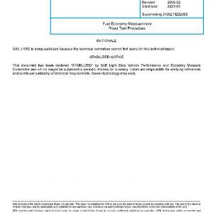 This SAE Standard incorporates driving cycles that produce fuel consumption data relating to Urban, Suburban, and Interstate driving patterns and is intended to be used to determine the relative fuel economy among vehicles and driving patterns under warmed-up conditions on test tracks, suitable roads, or chassis dynamometers.1