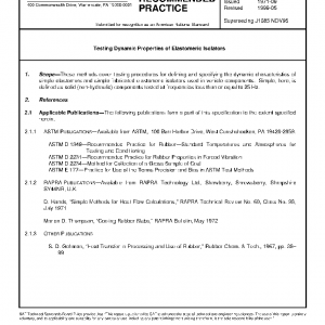 These methods cover testing procedures for defining and specifying the dynamic characteristics of simple elastomers and simple fabricated elastomeric isolators used in vehicle components. Simple, here, is defined as solid (non-hydraulic) components tested at frequencies less than or equal to 25 Hz.
