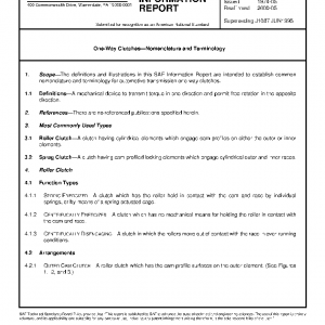 The definitions and illustrations in this SAE Information Report are intended to establish common nomenclature and terminology for automotive transmission one-way clutches.