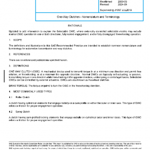 The definitions and illustrations in this SAE Recommended Practice are intended to establish common nomenclature and terminology for automotive transmission one-way clutches.