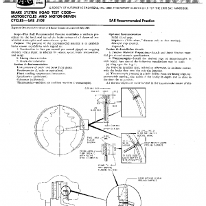 This SAE Recommended Practice establishes a uniform procedure for the level road test of the brake systems of all classes of two-wheeled motorcycles and motor-driven cycles.