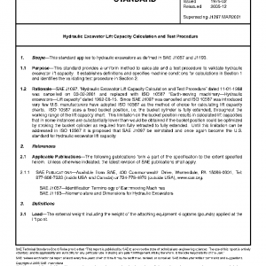 This standard applies to hydraulic excavators as defined in SAE J1057 and J1193.