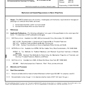 This SAE Standard covers the chemical, metallurgical, and mechanical requirements for two types of passenger car and truck wheel bolts, as follows:
