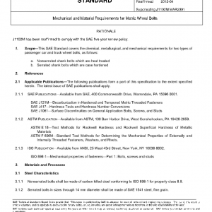 This SAE Standard covers the chemical, metallurgical, and mechanical requirements for two types of passenger car and truck wheel bolts, as follows: