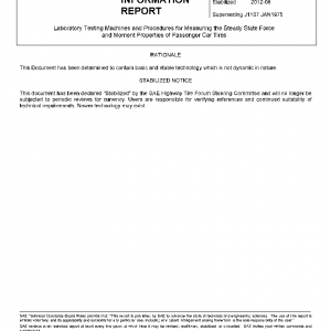 Laboratory Testing Machines and Procedures for Measuring the Steady State Force and Moment Properties of Passenger Car Tires(STABILIZED Aug 2012)