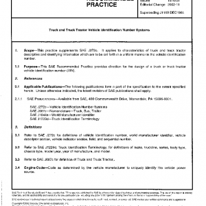 This practice supplements SAE J272c. It applies to characteristics of truck and truck tractor descriptive and identifying information which are to be set forth in a uniform manner in the vehicle identification number.