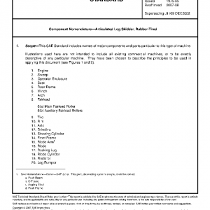 This SAE Standard includes names of major components and parts particular to this type of machine.