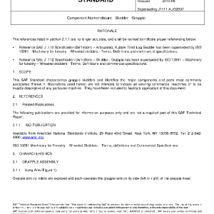 This SAE Standard characterizes grapple skidders and identifies the major components and parts most commonly associated therewith. Illustrations used herein are not intended to include all existing commercial machines or to be exactly descriptive of any particular machine. They have been included to facilitate application of this document