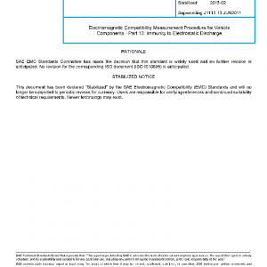 Electromagnetic Compatibility Measurement Procedure for Vehicle Components – Part 13: Immunity to Electrostatic Discharge(STABILIZED Feb 2015)