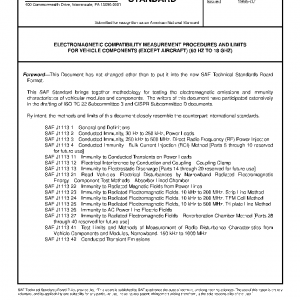 This SAE Standard covers the measurement of voltage transient immunity, and within the applicable frequency ranges, audio (af) and radio frequency (rf) immunity, and conducted and radiated emissions.