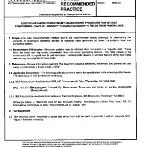 This SAE Recommended Practice covers the recommended testing technique for determining the immunity of automotive electronic devices to magnetic fields generated by power transmission lines and generating stations.