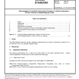 This SAE Standard specifies the test methods and procedures for vehicle components to determine the components immunity to radiated magnetic fields.