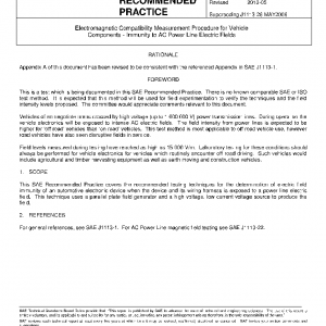 Electromagnetic Compatibility Measurement Procedure for Vehicle Components – Immunity to AC Power Line Electric Fields