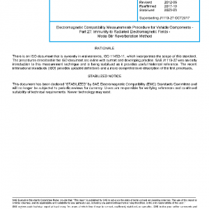 Electromagnetic Compatibility Measurements Procedure for Vehicle Components – Part 27: Immunity to Radiated Electromagnetic Fields – Mode Stir Reverberation Method(STABILIZED Mar 2023)