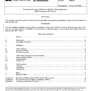 This part of SAE J1113 specifies the direct RF power injection test method and procedure for testing electromagnetic immunity of electronic components for passenger cars and commercial vehicles. The electromagnetic disturbances considered in this part of SAE J1113 are limited to continuous, narrowband conducted RF energy.