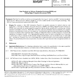 The purpose of this SAE Information Report is to provide concepts for rational selection and application of materials for Rollover Protective Structures (ROPS) and Falling Object Protective Structures (FOPS) and to provide information about the properties that should be considered in selecting and utilizing material in protective structures. While other materials could conceivably be used successfully, this report is limited to a consideration of steel with discussion on its mechanical properties and processing characteristics. Emphasis is placed on the toughness aspect (ability to resist brittle fracture) as this property is of paramount importance to structure integrity. It is emphasized that specific values for material properties have relevance to performance only in conjunction with specific design considerations such as structure size or weld joint detail and location. Because there are many design-material systems which can be successfully employed to achieve the prescribed performance of protective structures, this report does not make categorical selection of steels.