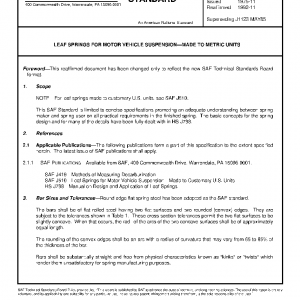 This SAE Standard is limited to concise specifications promoting an adequate understanding between spring maker and spring user on all practical requirements in the finished spring. The basic concepts for the spring design and for many of the details have been fully dealt with in HS-J788.