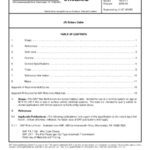 This SAE Standard covers low tension battery cable intended for use at a nominal system voltage of 60 V DC (25 V AC) or less in surface vehicle electrical systems. The tests are intended to qualify cables for normal applications with limited exposure to fluids and physical abuse.