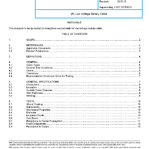 This standard covers low voltage battery cable intended for use at a nominal system voltage of 60 V DC (25 V AC) or less in surface vehicle electrical systems. The tests are intended to qualify cables for normal applications with limited exposure to fluids and physical abuse.