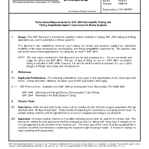 This document also establishes minimum qualifications for tensile and pressure capabilities, vibrational durability under cyclic temperatures, serviceability, and fitting compatibility requirements. The specific tests and performance criteria applicable to the tubing are set forth in SAE J844.