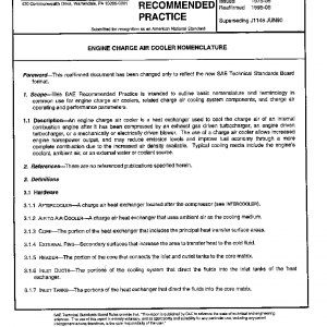 This SAE Recommended Practice is intended to outline basic nomenclature and terminology in common use for engine charge air coolers, related charge air cooling system components, and charge air operating and performance parameters.