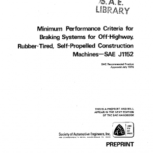 Minimum performance criteria for service braking systems, emergency stopping systems, and parking systems for off-highway, rubber-tired, self-propelled loaders, dumpers, tractor scrapers, graders, cranes, excavators, and tractors with bulldozer are provided in this SAE Recommended Practice. Refer to SAE J1057 and J1116 (Sections 1.1, 1.2, and 2) for machine identification.