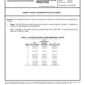This SAE Recommended Practice defines flywheel housing flange configurations for applications requiring “O” ring sealing of the flange pilot bore.